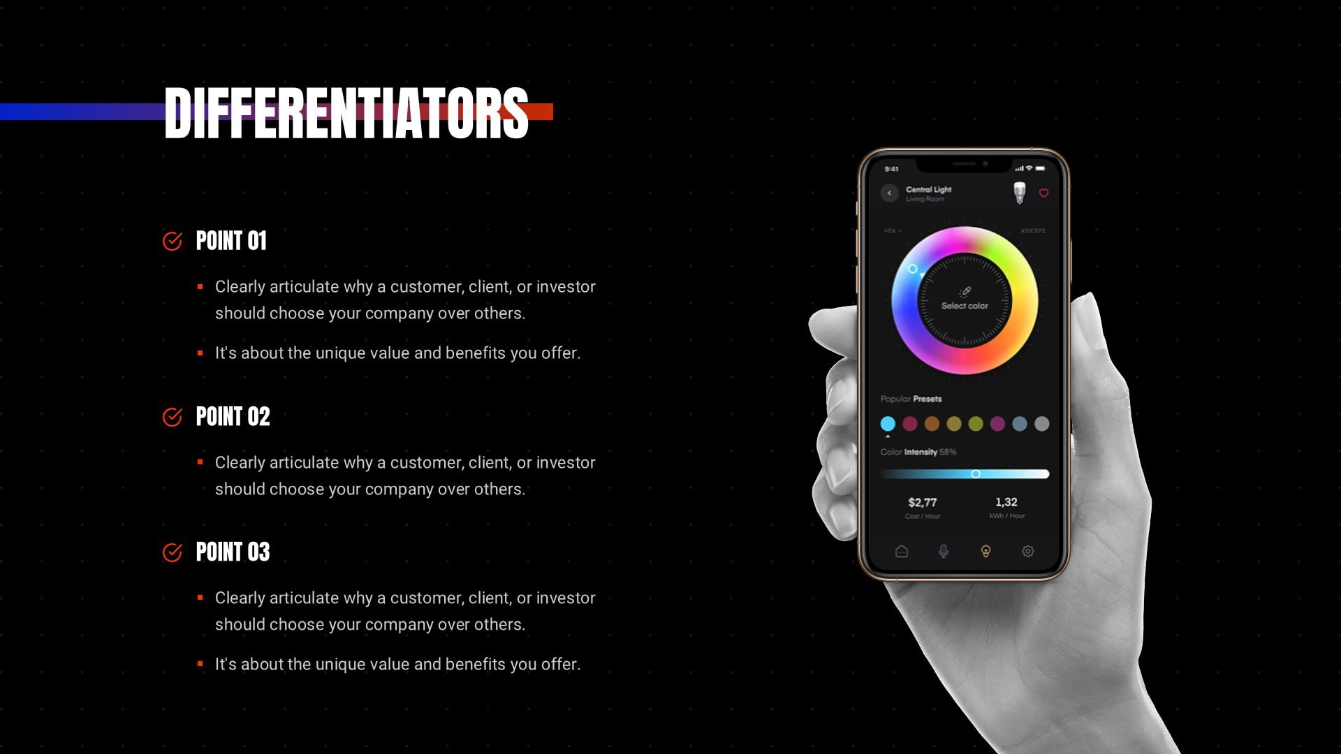 Our solution was a modular approach, combining consistent brand elements with flexible layouts. We integrated clean design, intuitive formatting, and customizable sections to support diverse presentation goals. This ensured the template was easy to use while still delivering the polished, professional look needed to impress stakeholders.