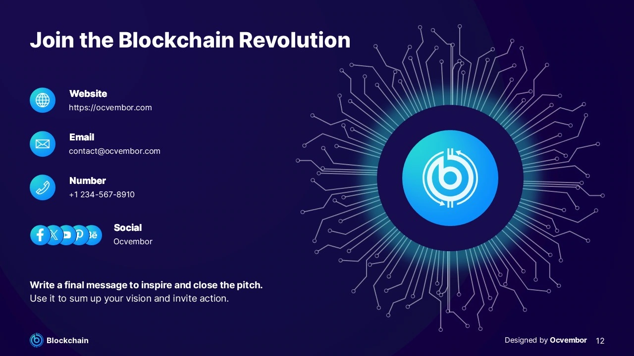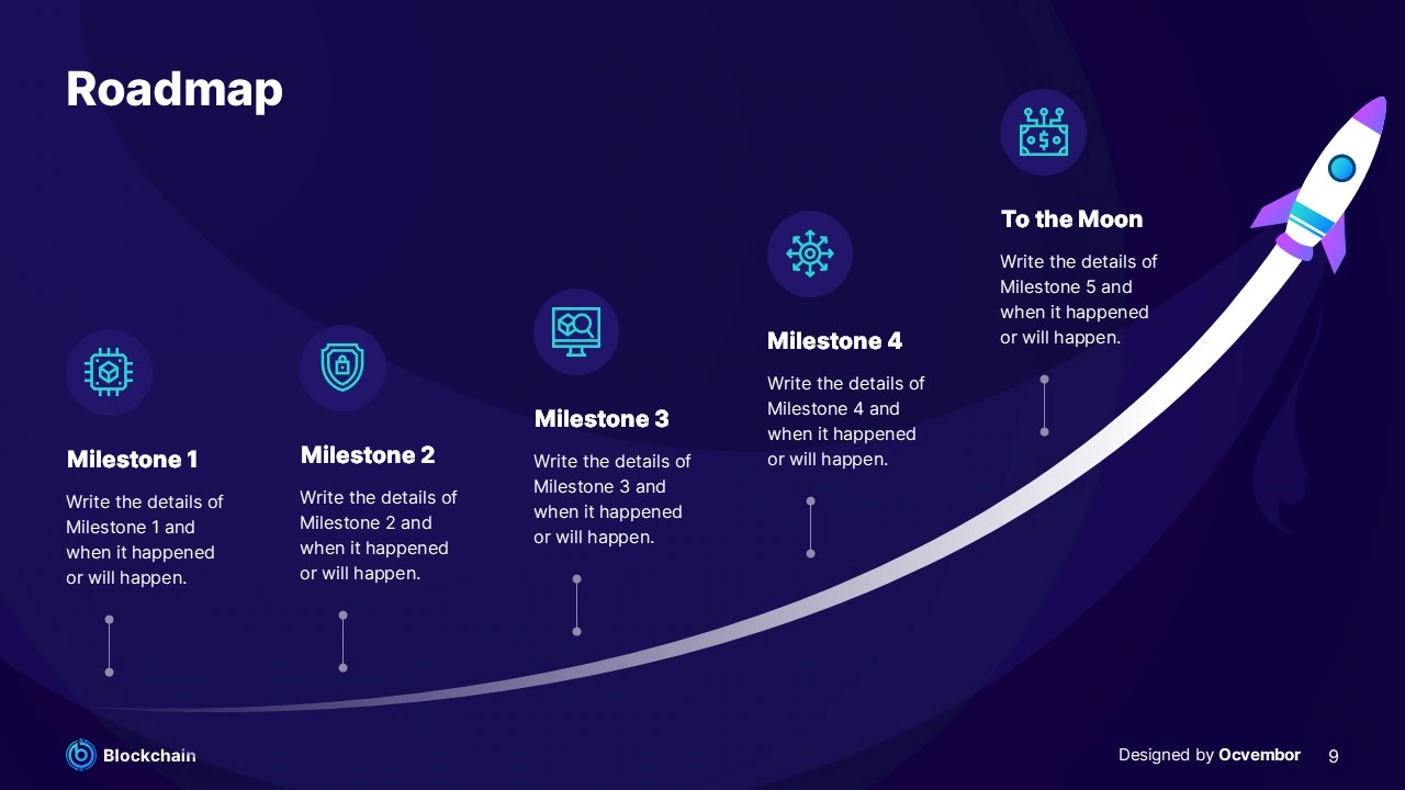 From the opening cover to the final call, this deck covers it all: pinpointing industry pain points that slow progress, unveiling solutions like tamper-proof transactions or smart contracts that redefine trust, and mapping out market potential with vibrant stats. Product slides dive into features, tokenomics break down value, and a roadmap charts the path ahead. Traction proves your momentum, your team’s expertise seals the deal, and a bold invitation to join the revolution closes with impact—positioning your project as the next big thing in blockchain.