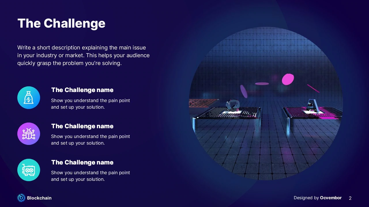 Revolutionize your crypto venture’s pitch with our Free Crypto Blockchain Pitch Deck Presentation Template. Designed for blockchain innovators and entrepreneurs, this 12-slide deck crafts a gripping narrative to win over investors. From industry challenges to tokenomics and roadmaps, it’s engineered to showcase your vision with clarity and impact. Download now to create a standout pitch, no design expertise required.