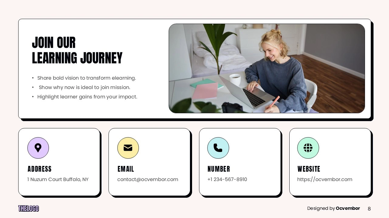The Free E-learning Pitch Deck Presentation Template is crafted for EdTech startups, course creators, and online learning platforms. Clearly showcase your solution, growth potential, and learner impact with this easy-to-edit, professional deck.