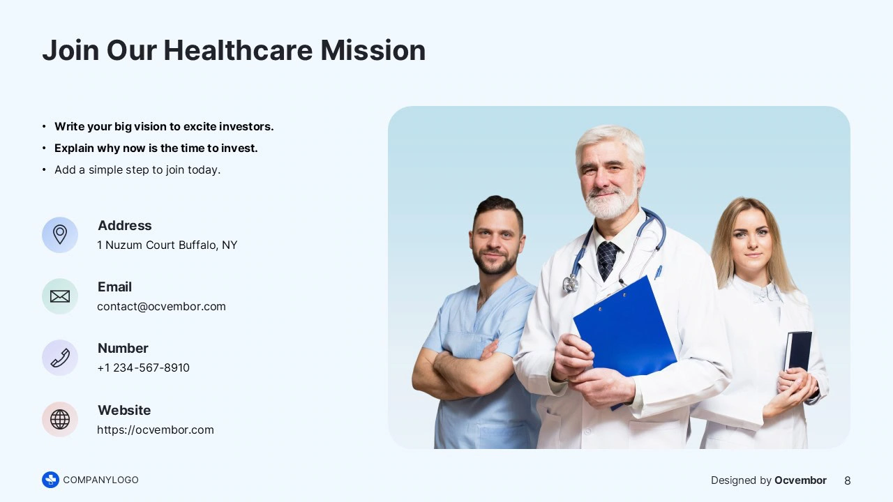 In the challenging healthcare landscape, a weak pitch can stall your impact. Our Free Healthcare Pitch Deck Presentation Template is your lifeline, offering an 8-slide journey that transforms your health solution into a compelling narrative. Ideal for telemedicine, patient care tech, or wellness platforms, this deck sets your mission in motion.