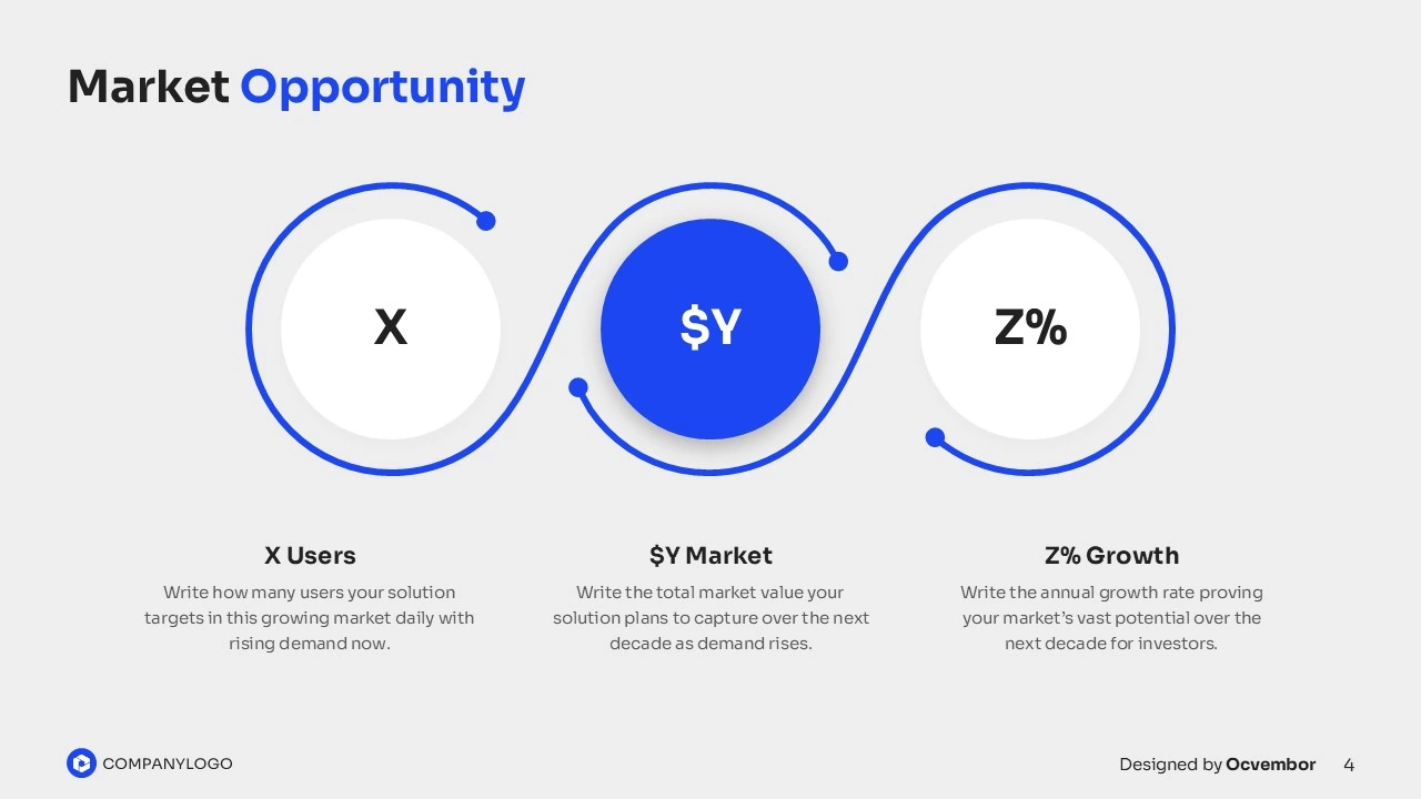 Ignite your startup’s potential with our Free Investor Pitch Deck Presentation Template. Designed for visionary entrepreneurs across industries, this 8-slide deck transforms your idea into a compelling narrative that resonates with investors. From pinpointing market disruptions to showcasing scalable growth, it’s crafted to secure funding and partnerships. Download now to build a professional pitch effortlessly, no design skills required.